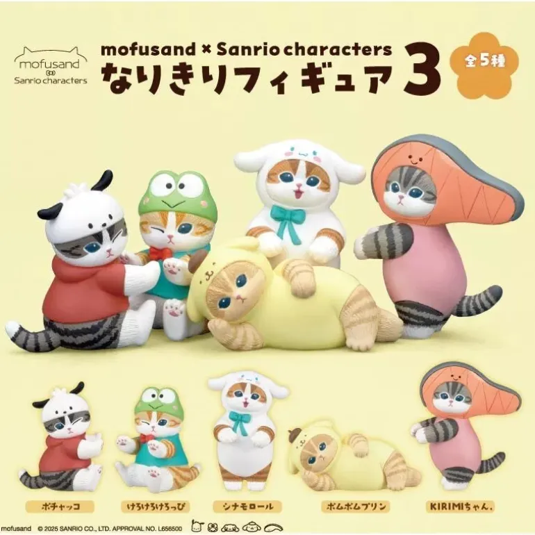 mofusand x Sanrio Characters Narikiri Figure 3 Complete Set Capsule Toy JAPAN